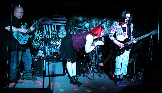 Cynthia is a performance poet, short novelist, painter, graphic designer, VJ (Google "VJ 7th Deadly") and funkless.com party instigator. She's been dating musicians since she was 16, so it finally dawned on her... if you can't beat them, join them! (It's really just poetry with a couple of chords and a shorter skirt, right?) Apparently, "I'm in a band" is the perfect excuse to wear and do ridiculous things! Her record for holding "the long note" on stage is 57 seconds. She has driven this band through 9 lineups with no licence, and refuses a breathalyzer.